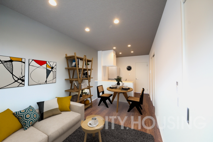 1LDKのお部屋のリビングは天井に設置されたダウンライトが