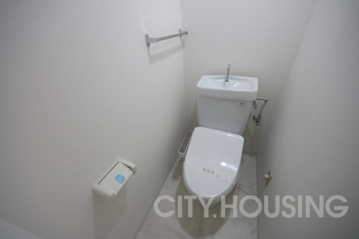 温水洗浄便座と暖房便座付きのトイレ。