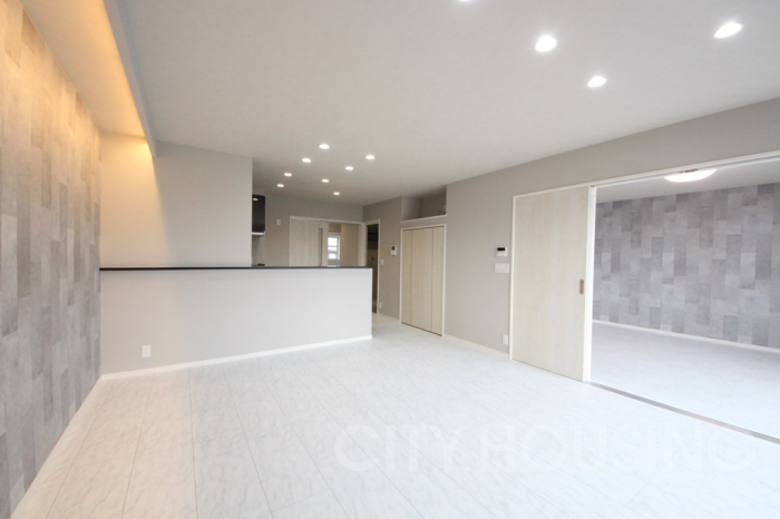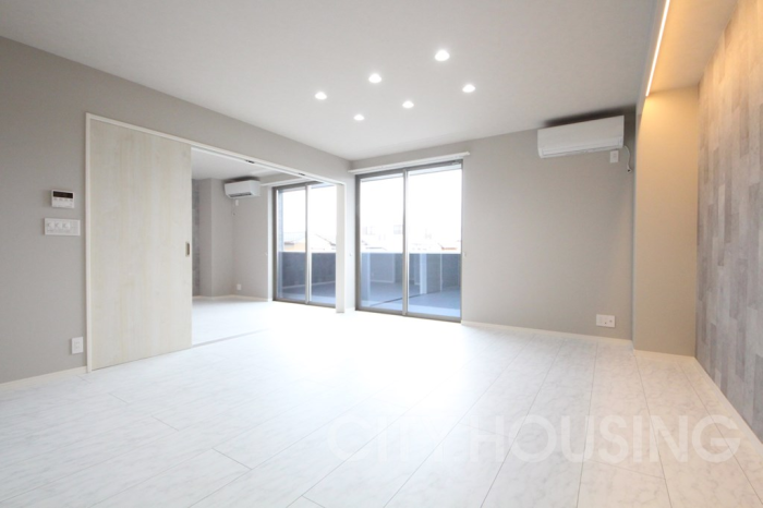 自然光が心地よく降り注ぐ19.0帖のLDK。