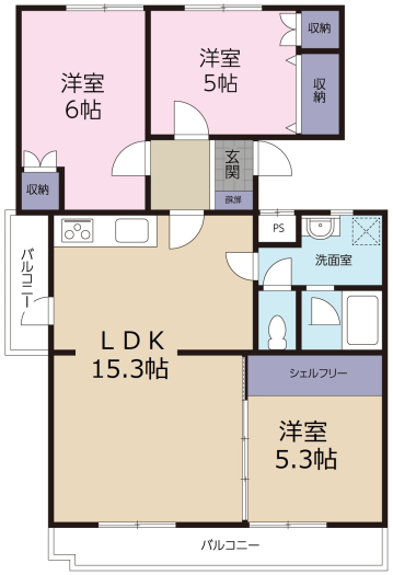 ファミリータイプにもおすすめの3LDKタイプ。